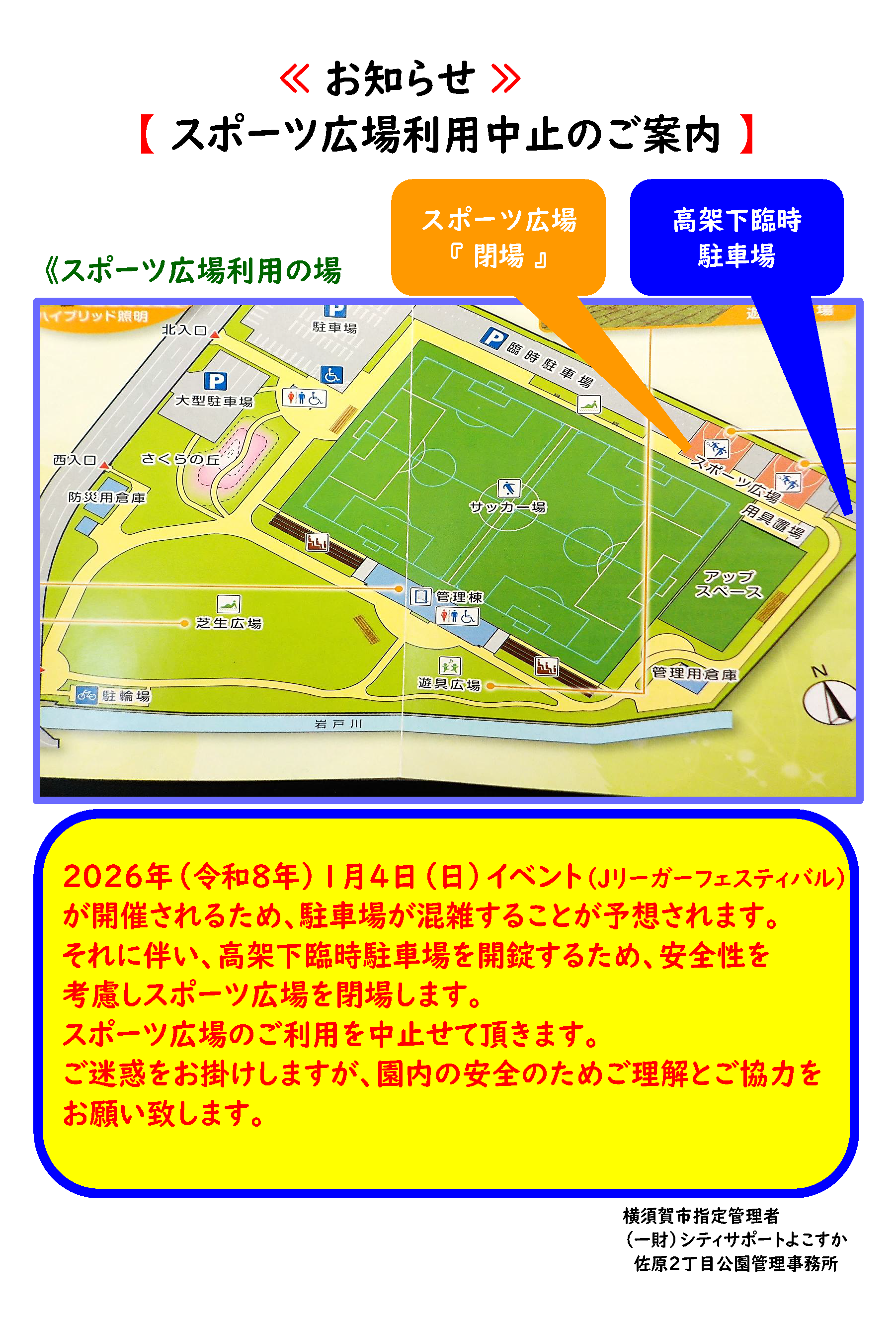 2026年1月4日(日)スポーツ広場利用停止のご案内